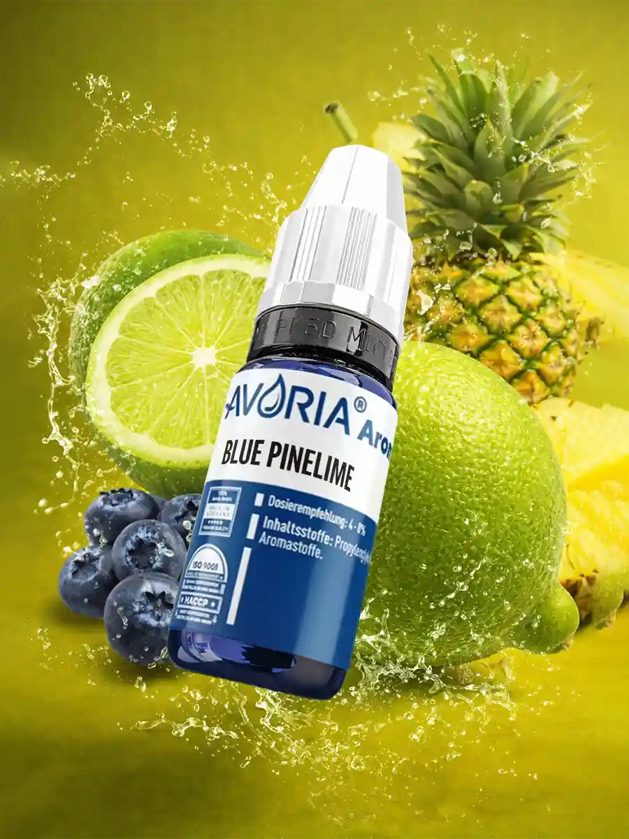 Unser Blue Pinelime Aroma ist ein sehr leckerer Fruchtmix. Hier wurden Früchte wie saftige Ananas, sonnengereifte Blaubeeren und ein Schuss von spritziger Limette kombiniert. Einfach nur genial und passend zu jeder Jahreszeit.