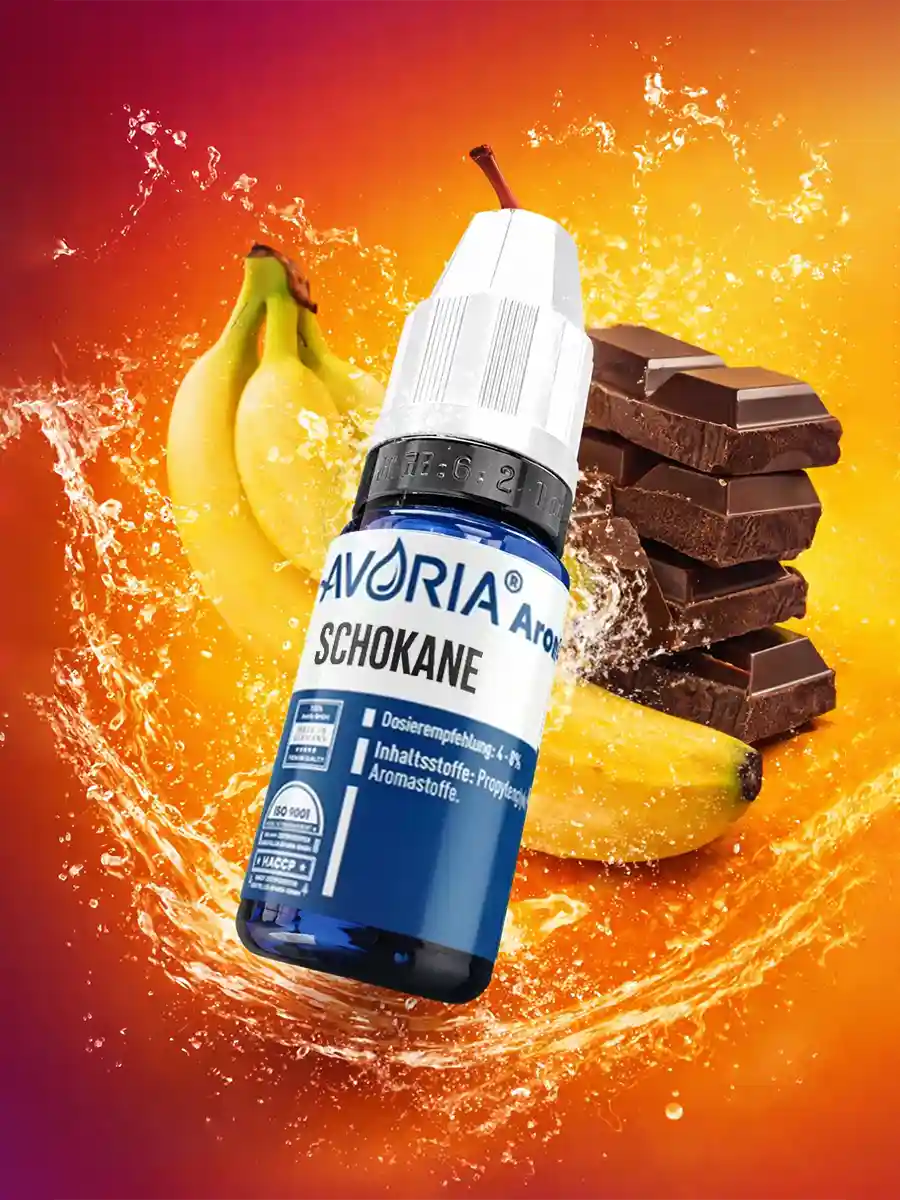 Kennen Sie noch die kleinen Schoko-Bananen von früher? Genauso schmeckt das SCHOKANE Aroma von Avoria! Wir haben eine feine Schokoladen-Note mit einer reifen Banane gekreuzt, um genau dieses Geschmackserlebnis zu erzeugen. Ein Bananensplit der Extraklasse, ganz ohne Kühle.