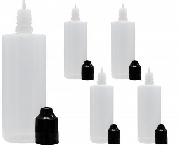(96) Liquidflasche 100ml PE Flat Top 5er Set